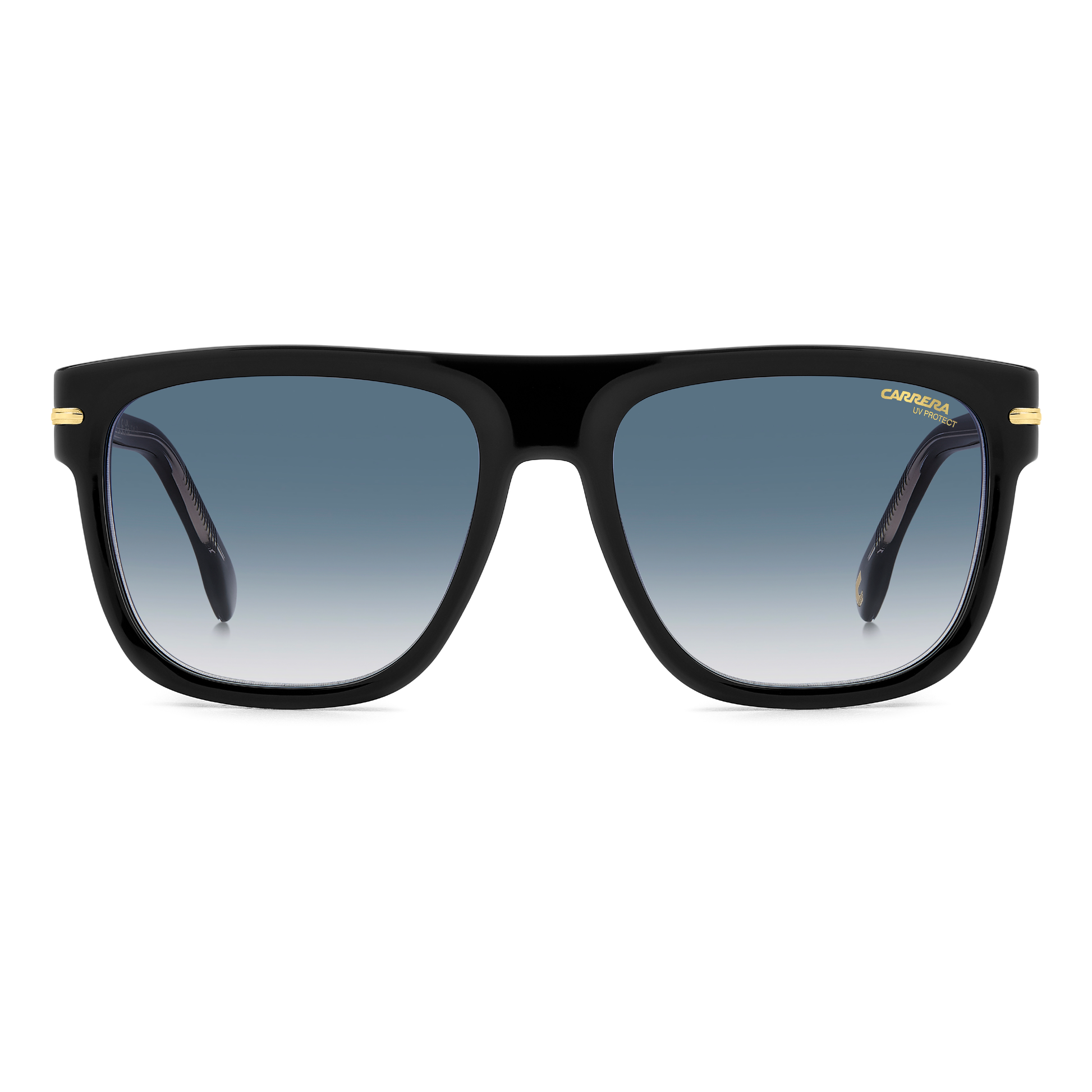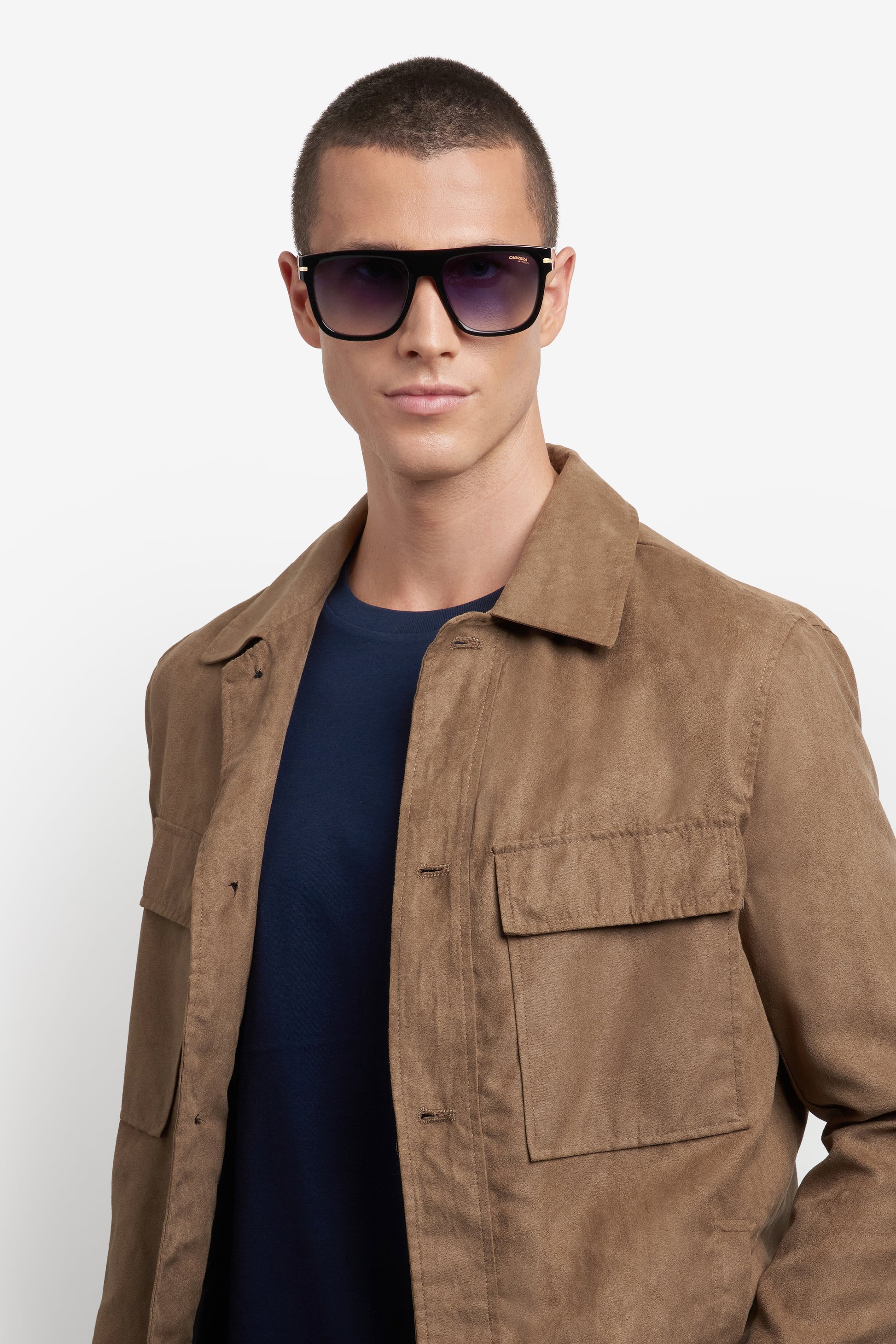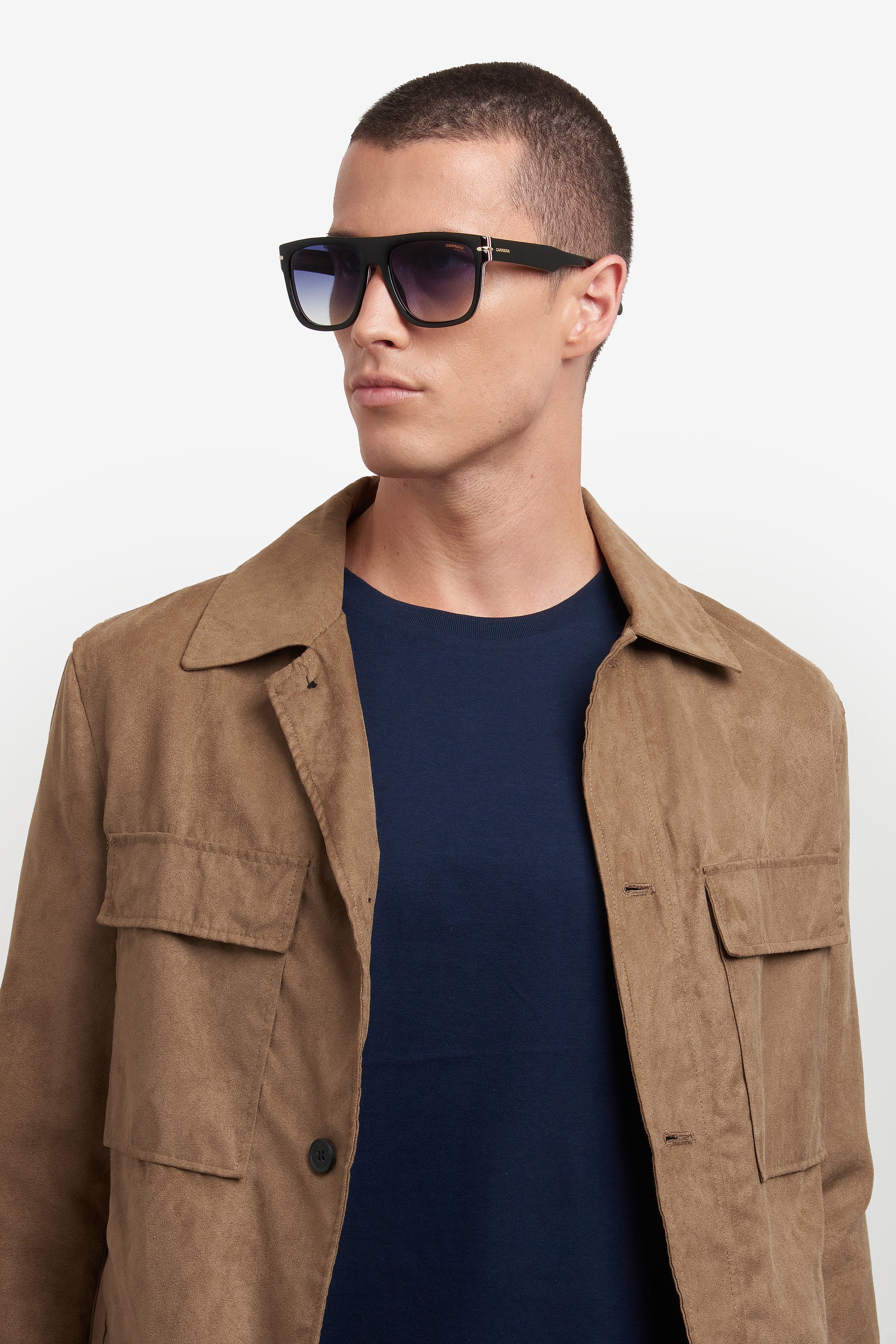 These acetate sunglasses by Carrera are sure to get noticed, with their ample proportions and bold details. Their resolute character is further highlighted by the flat top and the metal inserts. And why not venture a bit with the multi-layer version in the Carrera colours, or the versions with a visible core on the inner temples? This style can be fitted with prescription lenses. It also comes in a polarized version.