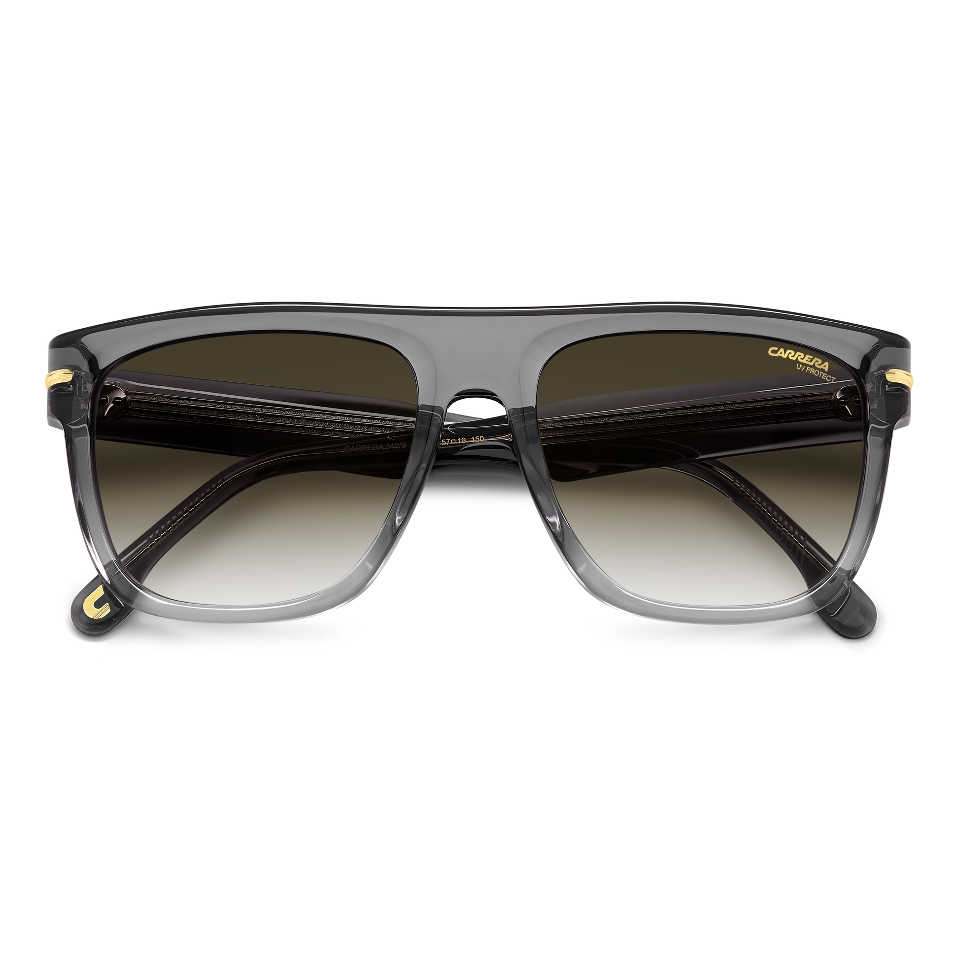These acetate sunglasses by Carrera are sure to get noticed, with their ample proportions and bold details. Their resolute character is further highlighted by the flat top and the metal inserts. And why not venture a bit with the multi-layer version in the Carrera colours, or the versions with a visible core on the inner temples? This style can be fitted with prescription lenses. It also comes in a polarized version.
