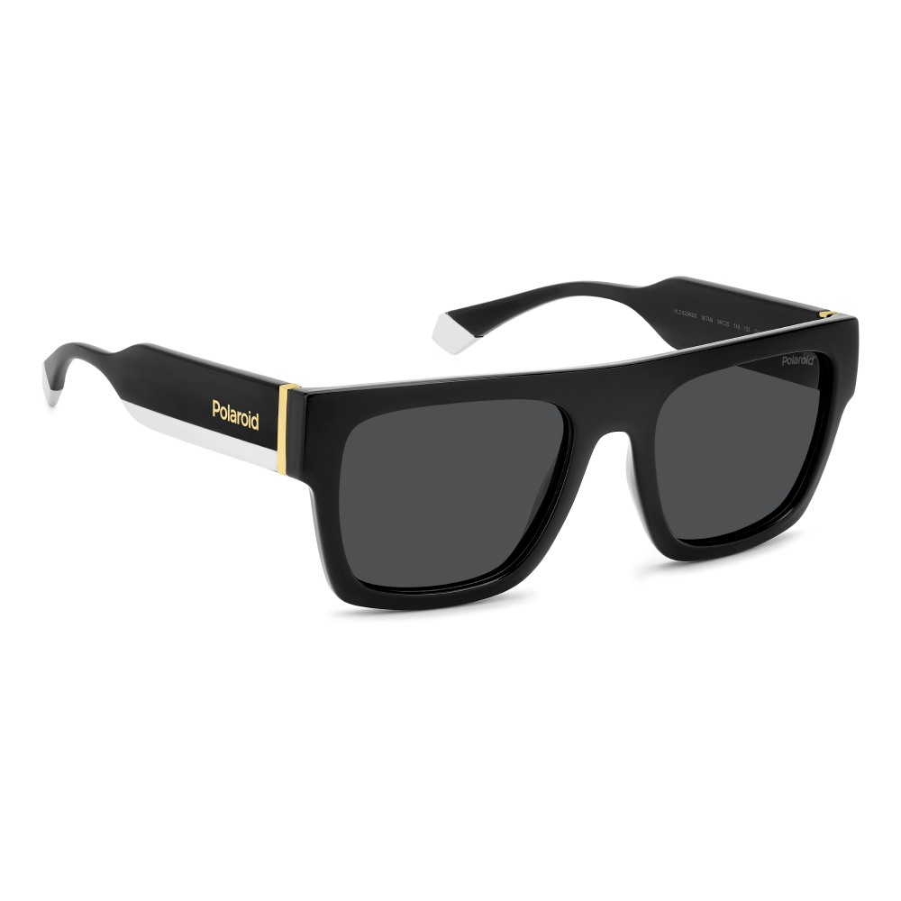 These unisex sunglasses by Polaroid protect the eyes as they embrace an on-trend look, thanks to their irresistible square shape. Flat along the top, the frames are designed to be able to hold prescription sun lenses. The bold temples are a true statement, trimmed by a metal insert and a printed logo. Neutral tones prevail, though there are versions with two-tone temples: a chromatic juxtaposition in pure Polaroid style.