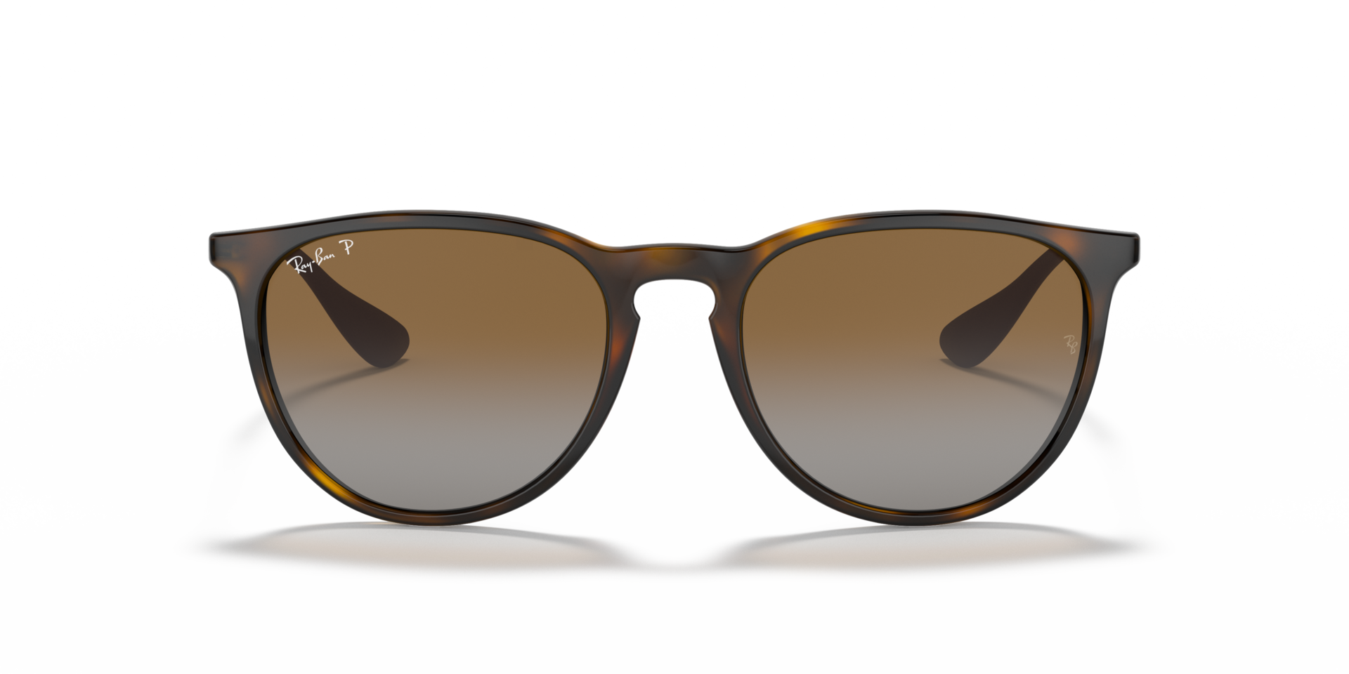 Ray-Ban Erika sunglasses feature gradient grey lenses and a rubber blue frame. The phantos shape, along with the keyhole bridge, adds a unique touch to these sunglasses. With their polished finish, they are perfect for any occasion.