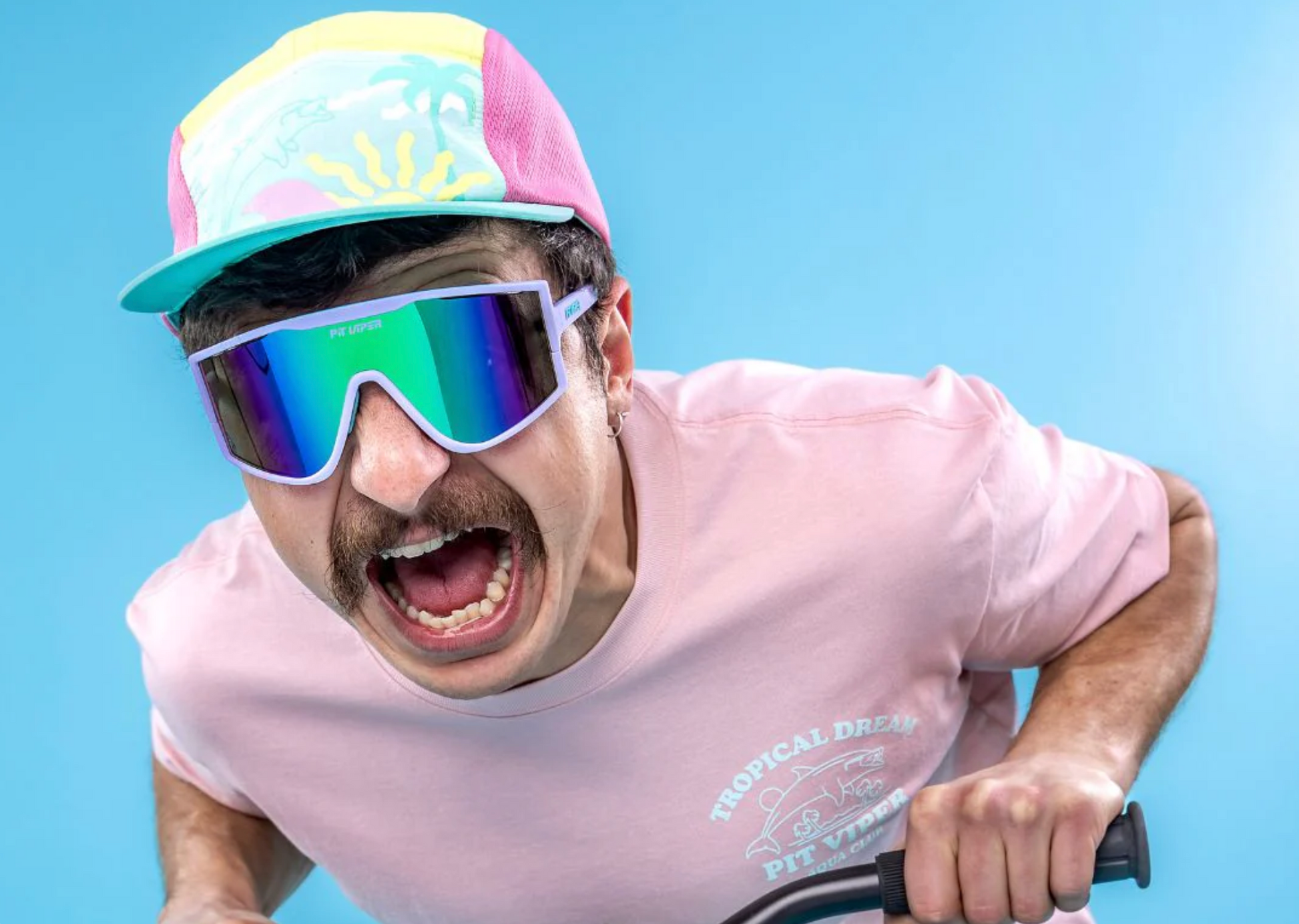 Take training too seriously in The Try-Hard. The first Pit Viper sunglasses to feature interchangeable lenses. One up the competition. Sweat out of your face. Have less fun. Train like everyone's watching.